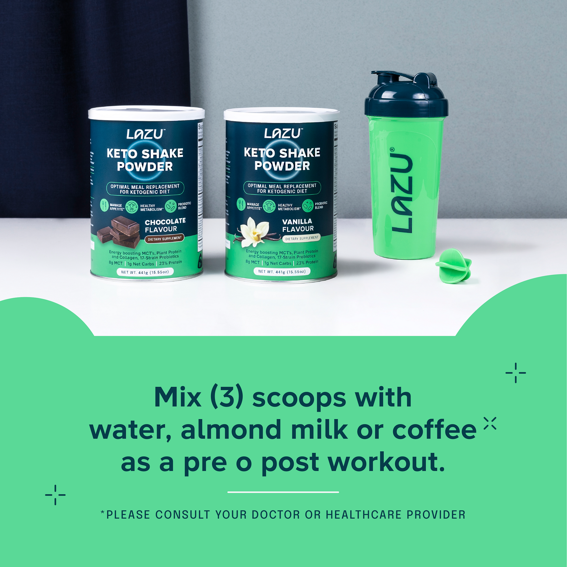 LAZU Keto Shake Powder™ is a breakthrough nutritional meal designed to support a healthy lifestyle and optimal weight management, by helping you maintain a healthy state of nutritional ketosis in your keto diet.